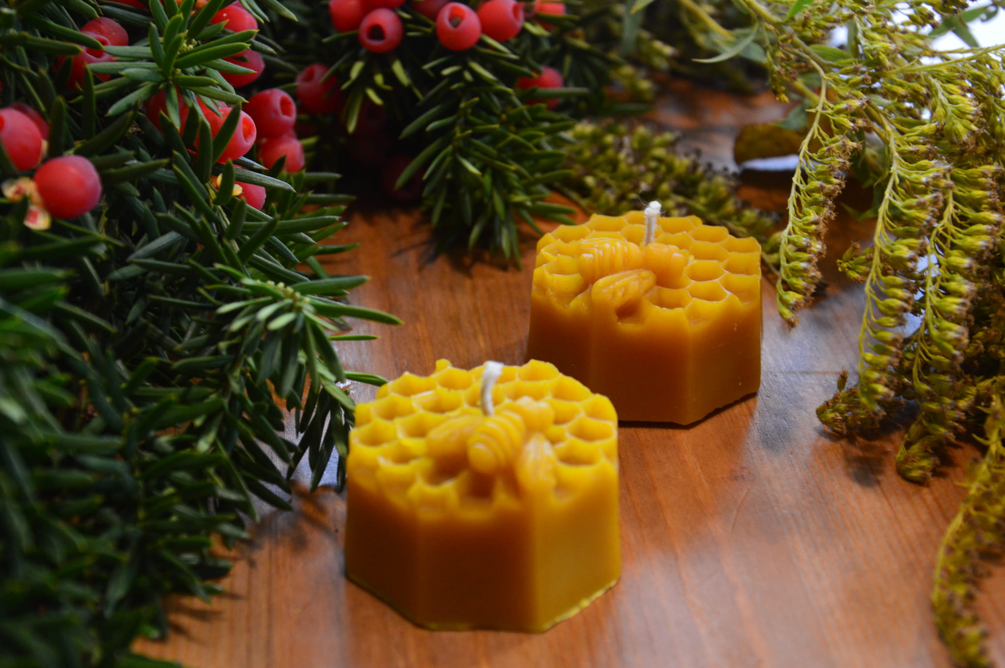 Świeca z wosku pszczelego – pszczółka na plastrze miodu heksagon